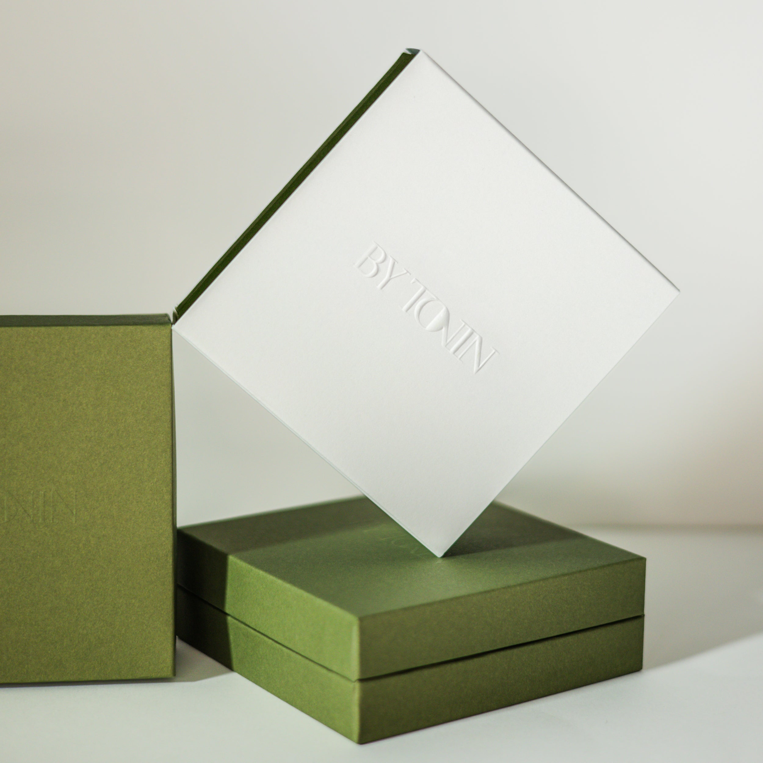 Our boxes are made from eco-friendly materials, and all other packaging materials are fully recyclable. Our signature velvet pouch is designed to be reused.